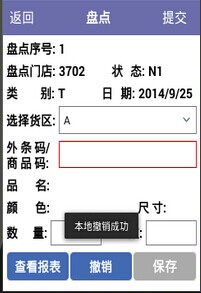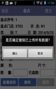 點(diǎn)擊撤銷(xiāo)按鈕,將上傳的盤(pán)點(diǎn)數(shù)據(jù)和本地保存的盤(pán)點(diǎn)數(shù)據(jù)都清零。