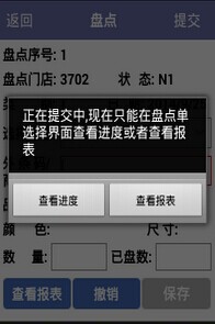 點(diǎn)擊盤(pán)點(diǎn)界面中右上角的提交按鈕,即可將所有的盤(pán)點(diǎn)數(shù)據(jù)提交,提交之后可以查看進(jìn)度和報(bào)表,提交成功之后在盤(pán)點(diǎn)單選擇的界面顯示提交的狀態(tài)
