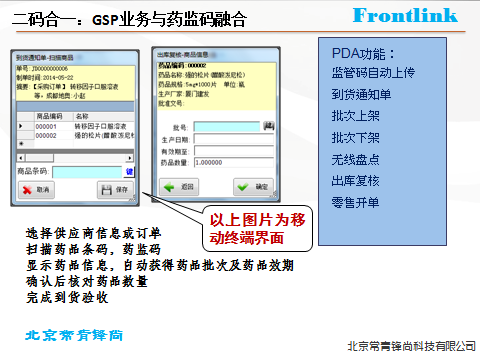利用藥監(jiān)碼特性和藥監(jiān)碼中信的新功能,結(jié)合目前我國醫(yī)藥企業(yè)的實際生產(chǎn)情況和管理要求,常青鋒尚對藥品身份的進(jìn)行二碼(商品碼和藥監(jiān)碼)合一,在此基礎(chǔ)上實現(xiàn)出入庫的精細(xì)化管理,直至出入庫等流通以及最終的銷售環(huán)節(jié)的產(chǎn)品質(zhì)量追溯管理系統(tǒng)、防竄貨系統(tǒng)。