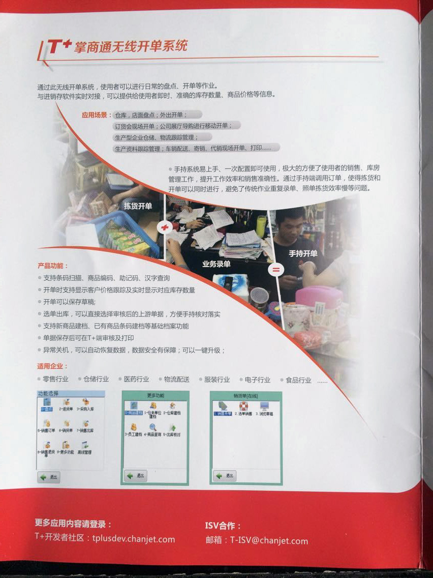 由用友主辦的中國(guó)企業(yè)互聯(lián)網(wǎng)大會(huì)在北京順利舉辦,會(huì)場(chǎng)展示了用友集團(tuán)的最新工作成果。其中,在暢捷通T+板塊的宣傳彩頁(yè)上,掌商通產(chǎn)品得到了細(xì)致的展示。感謝暢捷通提供給我們的宣傳平臺(tái)!在未來(lái)的工作中,我們和暢捷通仍要繼續(xù)加深合作,努力給使用者帶來(lái)更為便捷、穩(wěn)定的手持開(kāi)單體驗(yàn)。