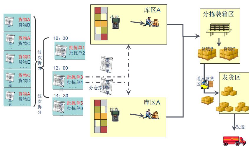 按品類生成撿貨任務,按貨區(qū)位置排序。